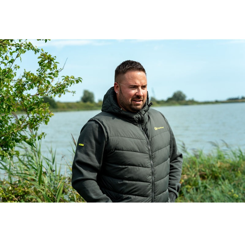 Mantel der Marke Ridge Monkey, Serie APEarel ThermaPro, modelo Hybrid Mantel, in Farbe grün, perfekt um sich beim Karpfenangeln warm zu halten.