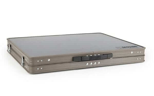 - Oberer Teil lässt sich wie ein Tisch zusammenklappen.