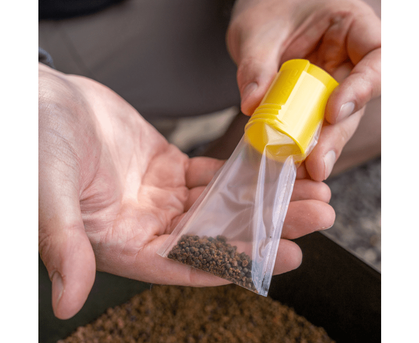 Beutel mit Pva der Marke Avid Carp, Perfekt zum Ködern beim Karpfenangeln.