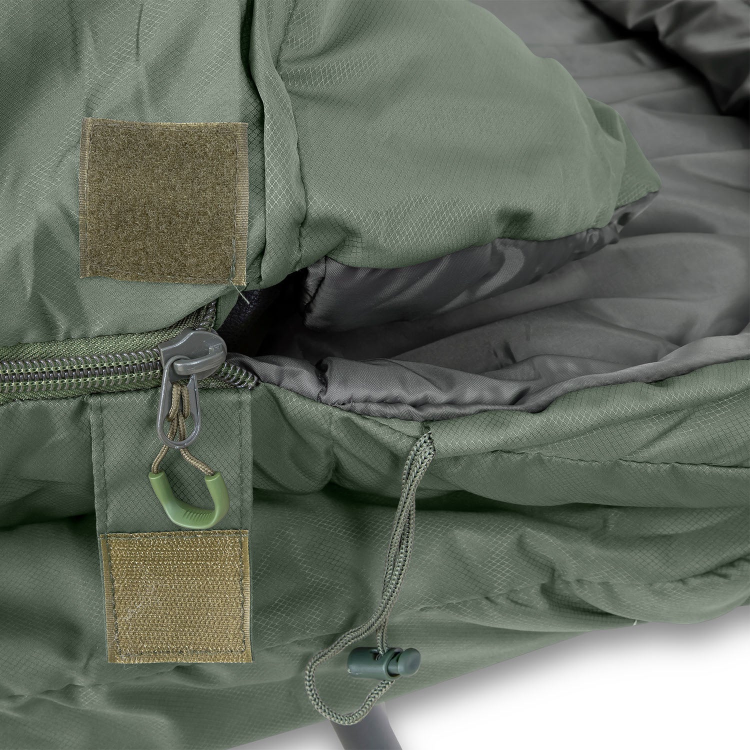 - Ein System, das einen hochwertigen Schlafsack und einen stabilen Liegeflächenrahmen kombiniert, ideal für den ganzjährigen Einsatz.