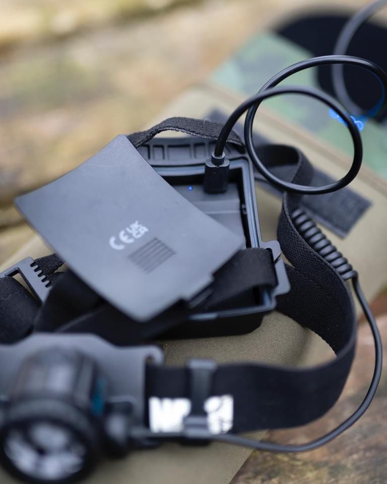 Einstellbare Marken-Kopflampe Nash Modell Mega Lite mit folgenden Merkmalen 760 Lumen, ideal für nächtliche Angelausflüge. Dank des flachen Profils ist sie leicht zu tragen.
