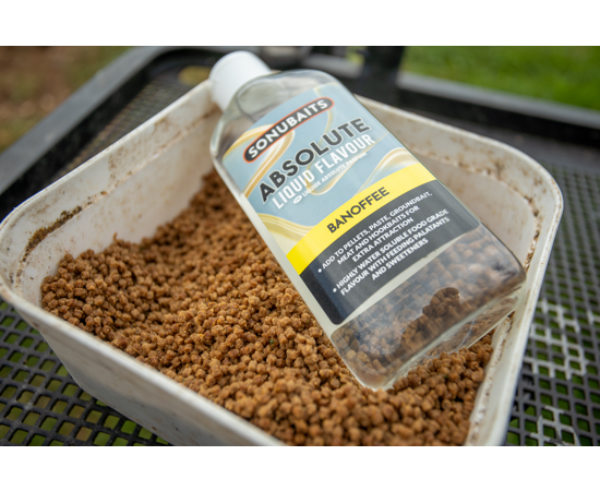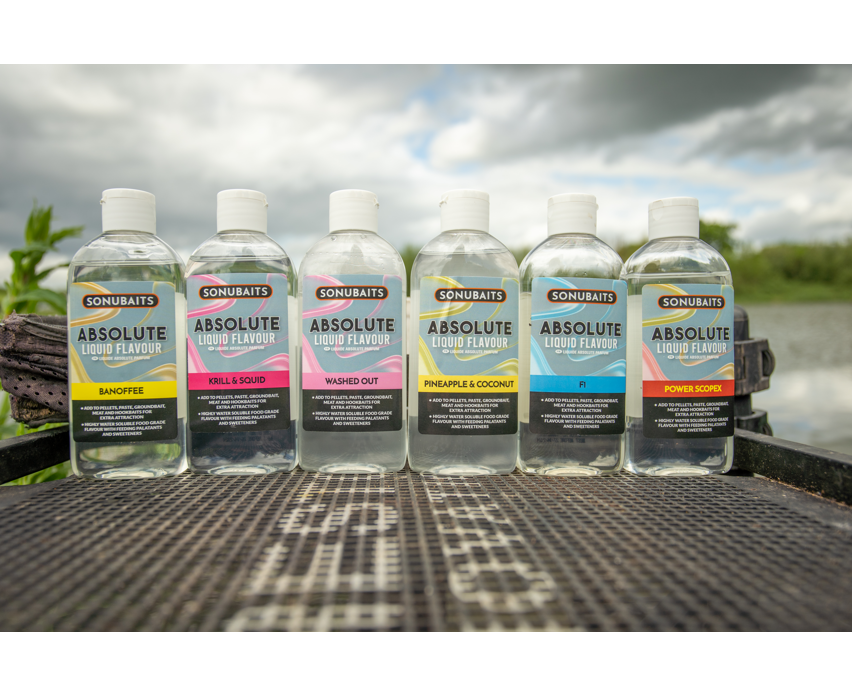 Flüssigkeit der Marke Sonubaits, Bereich Absolute, perfekt zum Aufpeppen von Karpfenködern.