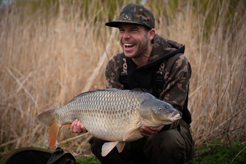 Markenkappe mit flachem Schirm Fox Modell Schnappverschluss mit Design Camouflagespeziell für das Karpfenfischen.