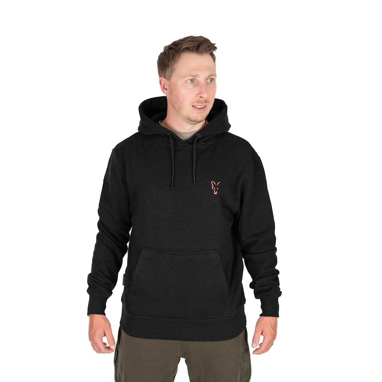 Markensweatshirt Fox Modell Kollektion in Farbe schwarz mit dem Logo des berühmten Wolfs in schwarzer Farbe bestickt. orangespeziell für Carpfishing.