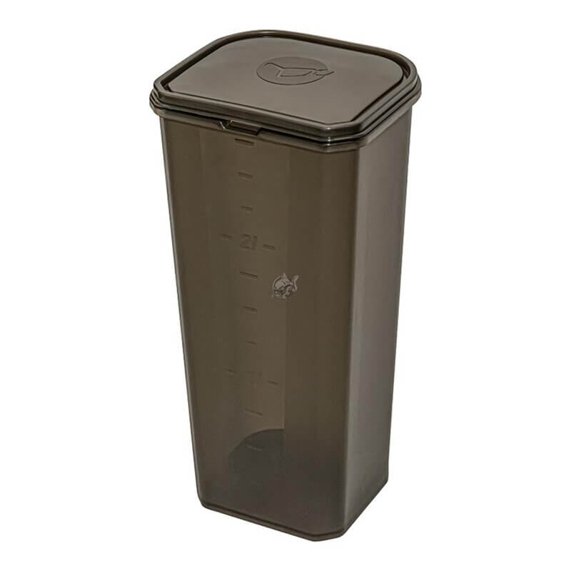 Länglicher Behälter mit einem Fassungsvermögen von 3 Liter Fassungsvermögen der Marke Korda Modell Ersatz in Farbe tarngrün, speziell für das Karpfenfischen.