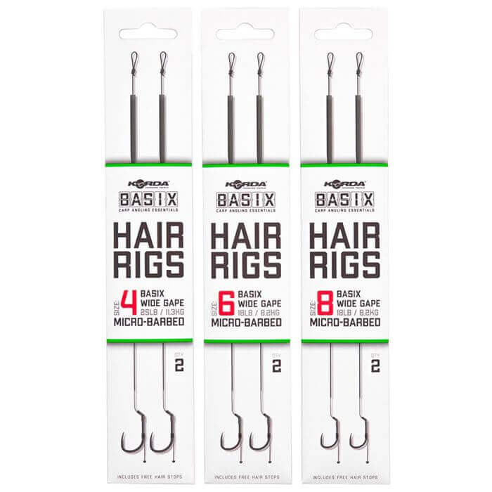Montierte Haken der Marke Korda, Bereich Basix, Modell Wide Spaltweite, speziell für das Karpfenfischen.