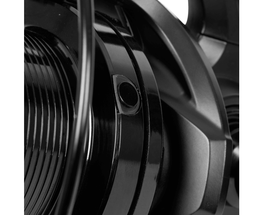 Rolle der Marke Avid Carp Modell Revolve 12000FS in Farbe schwarz, insbesondere zum Karpfenangeln.