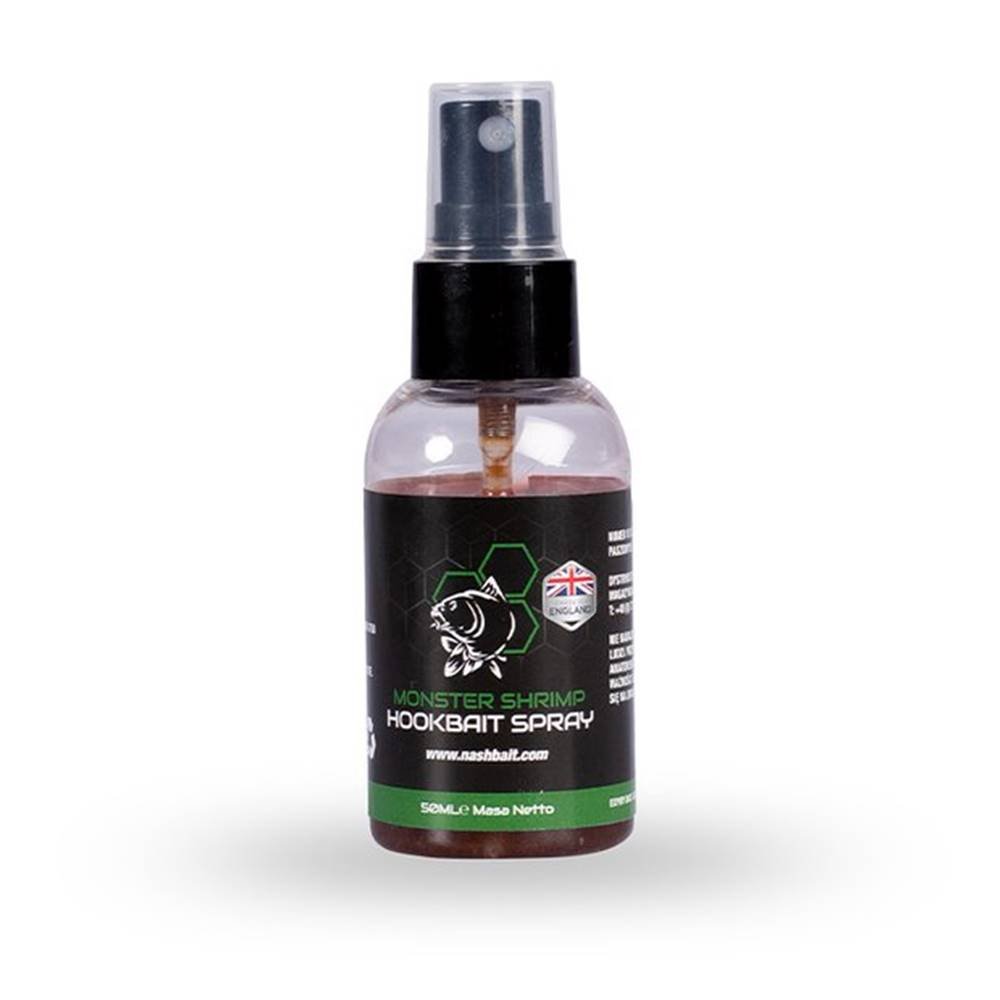 Lockstoff-Spray Hakenköder, der Marke Nash, parfümiert mit Monster Shrimp, speziell für das Karpfenfischen.