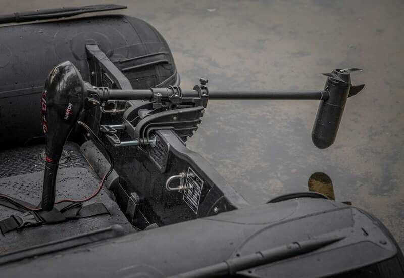 Kompaktes Boot der Marke Raptor Modell 200 X-Treme mit Luftboden unter kohleschwarz, speziell für Carpfishing.