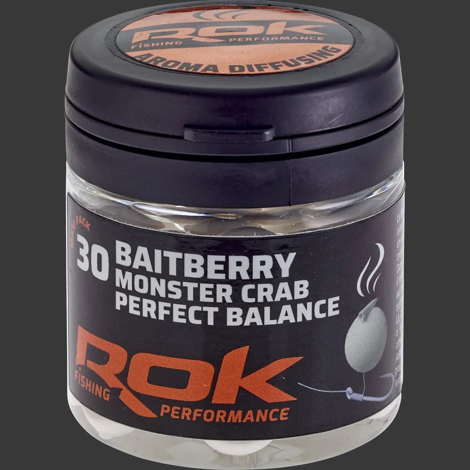Köderbeere der Marke Rok Fishing Modell Perfektes Gleichgewicht in Farbe weiß duftend mit Monsterkrabbespeziell für das Karpfenfischen.