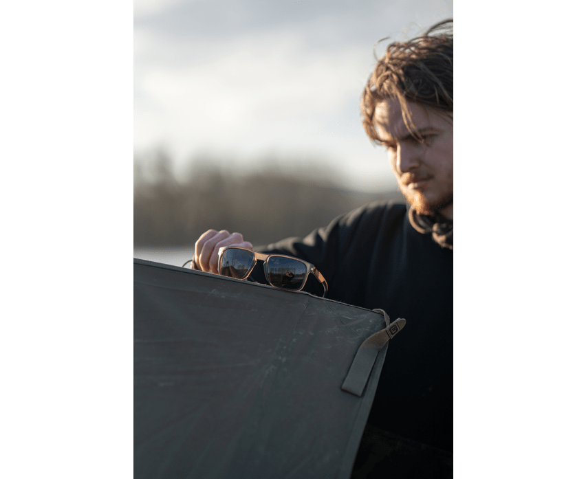 Sonnenbrille Marke Avid Carp, Modell SeeThru Mirage unter Farbe braun, mit Linsen rauchig grau, perfekt für Ihre Carpfishing-Sessions.