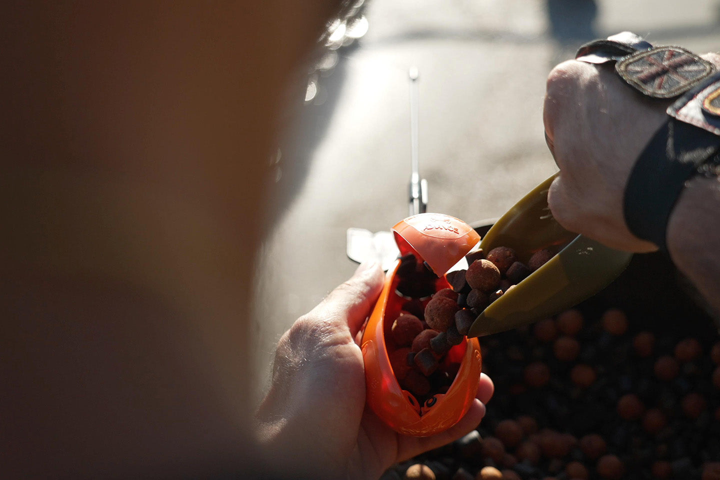Spyder Köderrakete , Modell Medium Orange/Schwarz, speziell für das Köderangeln vom Ufer aus beim Karpfenangeln.