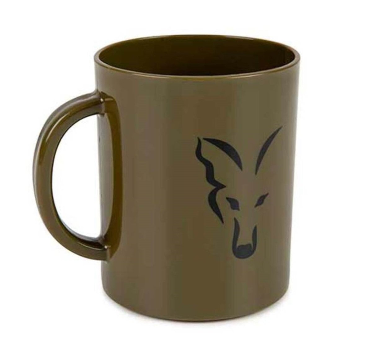 Markenbecher Fox mit Farbgestaltung grün und Logo in Farbe schwarz, speziell für Carpfishing.