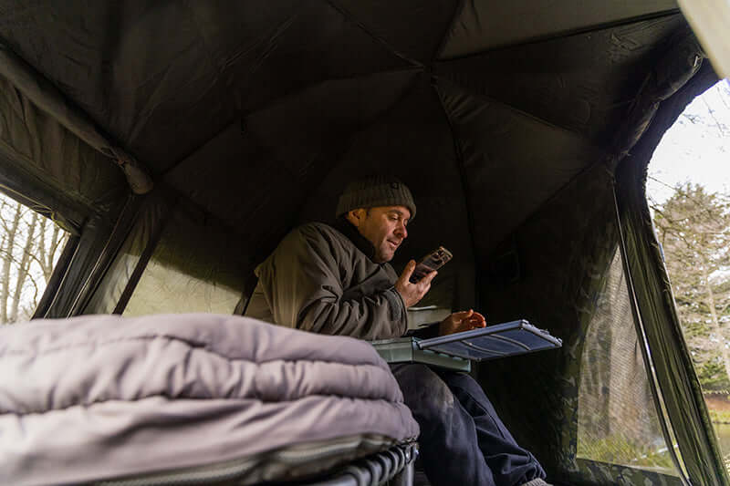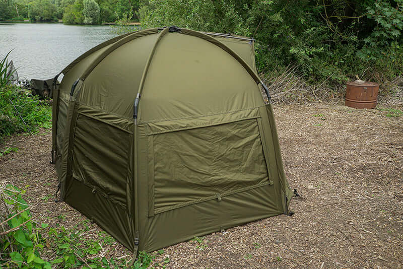 Markenschutzdach Fox, Modell Frontier X+speziell für das Karpfenfischen.