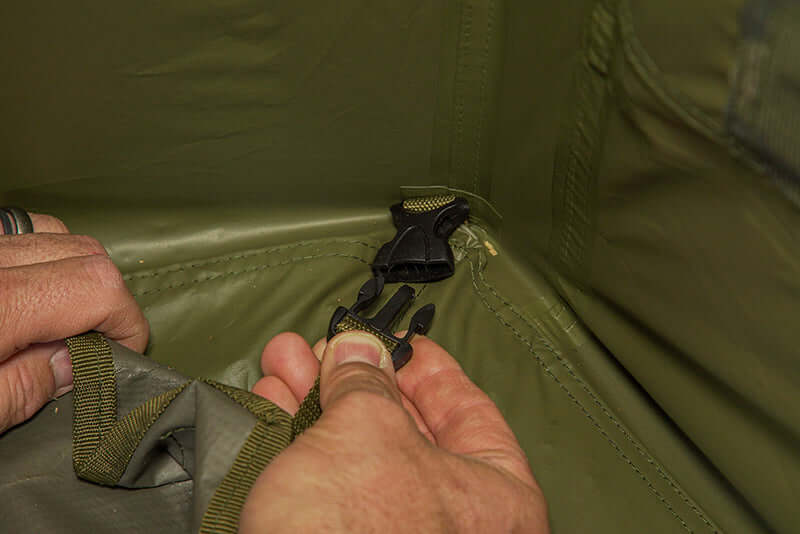 - Ausgestattet mit einem Spanngurt aus Stoff, Sturmkordelösen mit Kordelzug, die in der Pintasche verstaut werden