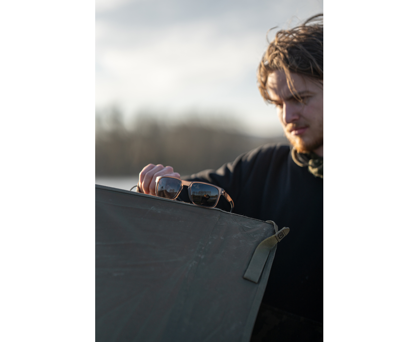 Sonnenbrille Marke Avid Carp, Modell SeeThru Mirage unter Farbe braun, mit Linsen rauchig grau, perfekt für Ihre Carpfishing-Sessions.