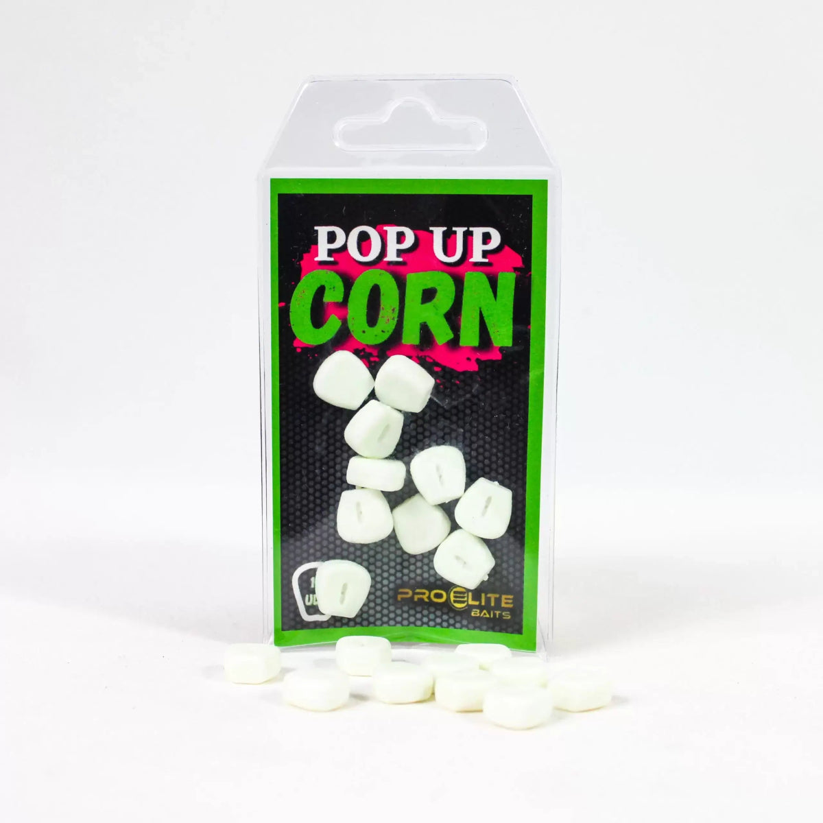 Künstlicher Mais pop up der Marke Pro Elite Baits unter Farbe weißspeziell für Carpfishing.
