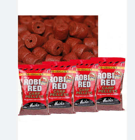 Pellets der Marke Dynamite Baits von 6 Millimeter aromatisiert mit Source in Farbe rotspeziell für das Karpfenfischen.