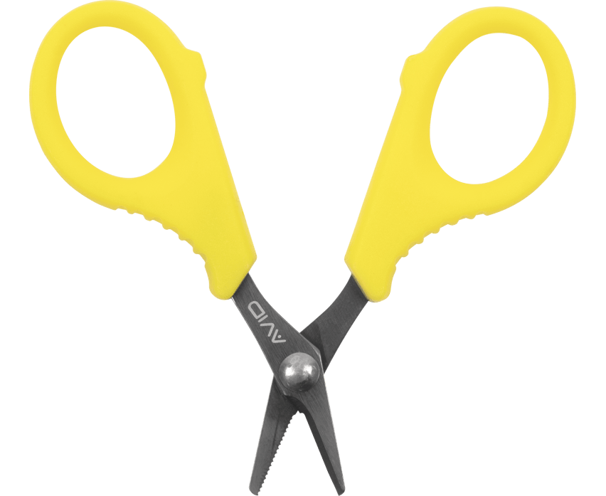 Scheren der Marke Avid Carp von Farbe gelbe kompakte Größe zum Flechten, speziell für das Karpfenfischen.